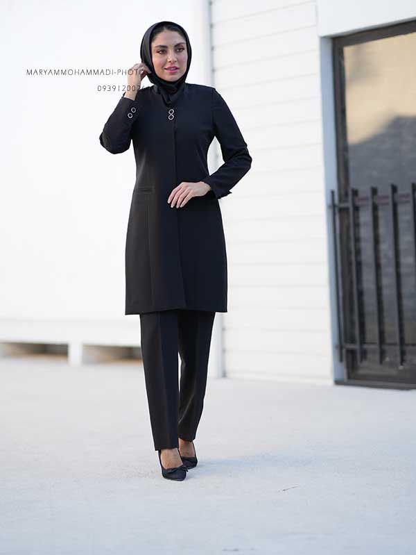 مانتو شلوار اداری پارچه فیونا یقه بلیزر