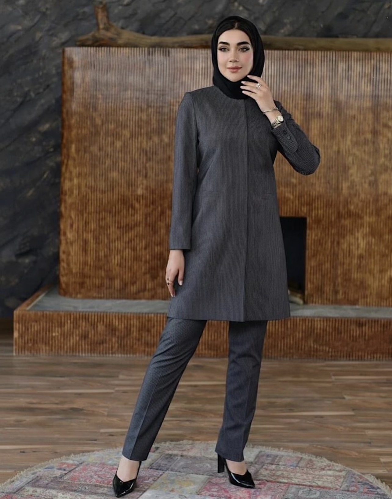 مانتو شلوار اداری زنانه پارچه فیونا یقه ایستاده