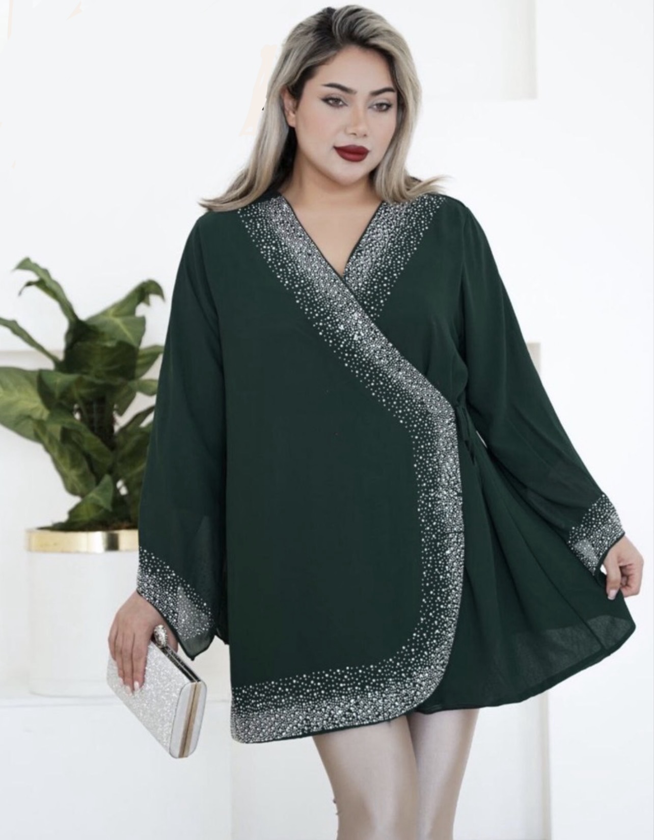 تونیک عربی یکی از مدلهایی است که بهواسطه ترکیب طراحی مدرن و جزئیات نگینکاریشده، توانسته توجه بسیاری از مشتریان را جلب کند. مهمترین نقطه قوت این تونیک، استفاده از نگینهای صنعتی پرسی است که برخلاف نمونههای چسبی، ماندگاری بالاتری دارند و در برابر شستوشو و استفاده روزمره مقاومترند. این موضوع باعث میشود ظاهر تونیک برای مدت طولانی شیک و درخشان باقی بماند.